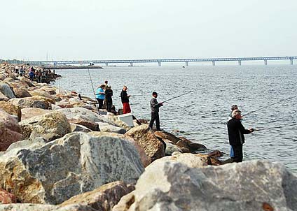Ön delas i en nordlig och en sydlig del genom Övägen.